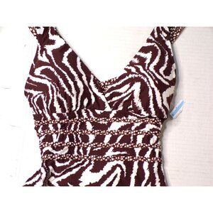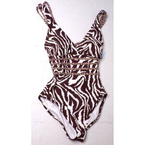 🆕LA BLANCA Cross Back One Piece Tummy Control Swimsuit Animal Print 10