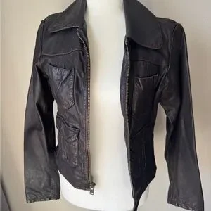 American Eagle Outfitters Brown Leather Jacket Fitted Style