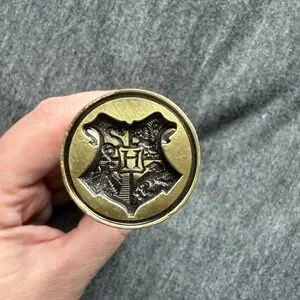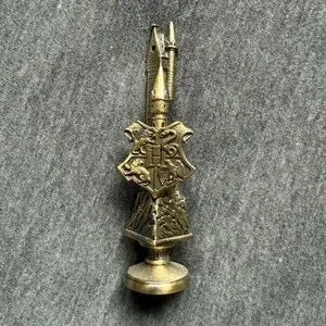 Elegant gold wax sealer featuring a detailed Hogwarts crest design. In excellent condition.