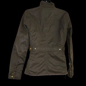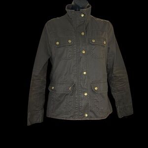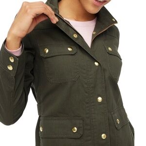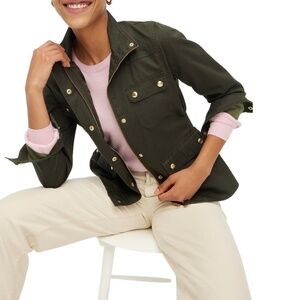 J. Crew resin-coated twill field wax jacket olive green mossy brown w gold snaps