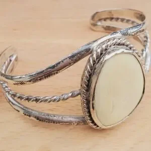 Navajo White Bone Sterling Silver Twisted Rope Cuff Bracelet Small 6.5in