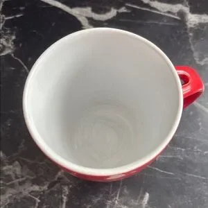 Enjoy your favorite beverage in this charming red mug adorned with white hearts. Perfect for adding a touch of love to your dining experience.