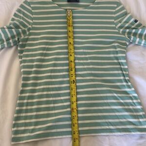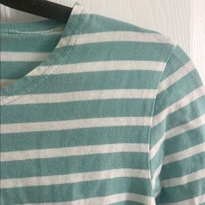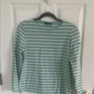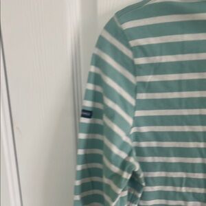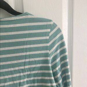 Stylish green and white striped long sleeve shirt. Perfect for casual wear.