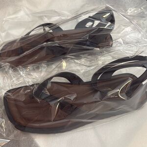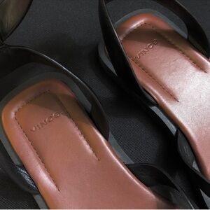 VINCE Samuela Genuine Leather Lug Sol Sandal w/ Ankle Strap 9 Black Brown
