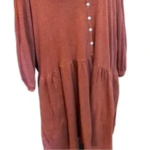 Free People Beach Linen Blend Drop Waist Button Up Oversized Mini Dress Medium