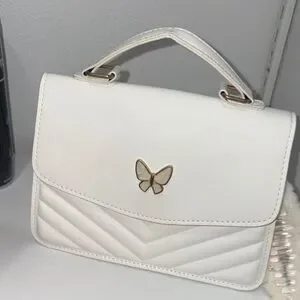 This chic white handbag features a stylish butterfly accent, perfect for adding a touch of elegance to any outfit. Ideal for both casual and formal occasions.