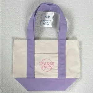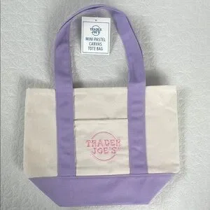 Stylish and practical, this mini canvas tote bag features a charming purple and cream design. Perfect for everyday use, it combines durability with a touch of elegance.