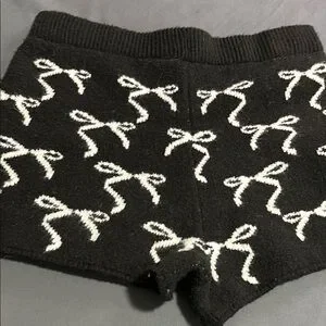 Trendy black shorts adorned with a white bow pattern. Ideal for casual outings.