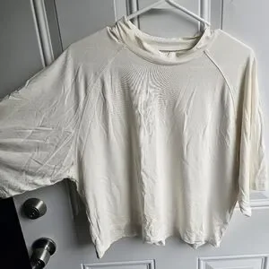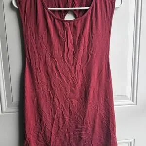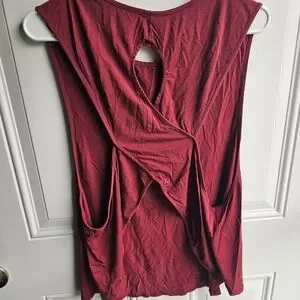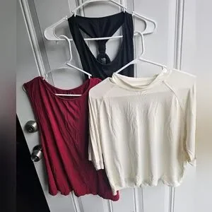 Two full length tanks (black and burgundy) and a cropped, cream shirt. All lightweight, cooling, stretchy fabric. Black and cream used, like new. burgundy used, good condition.