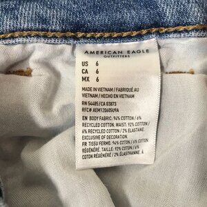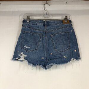AMERICAN EAGLE - MEN'S 6 - BLUE FLORAL EMBROIDERED DENIM MOM JEAN SHORTS