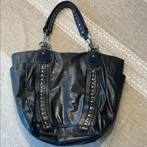 Sigrid Olsen Black Studded Leather Tote Bag Fully Lined