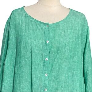 Tahari Linen Button Longsleeve Blouse Green 3X