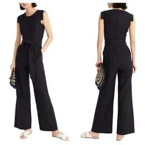 NWT J.Crew Resume Jumpsuit in Black Stretch Linen Belted Wide Leg 1-Piece 12