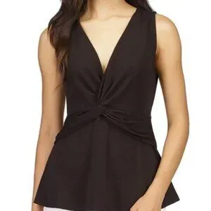🆕 Michael Kors Women's Twist-Front Sleeveless Baby-Doll Top-Black