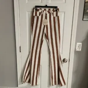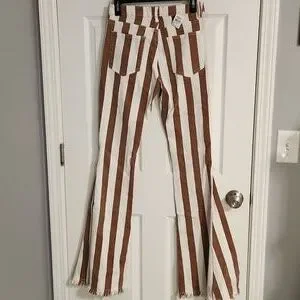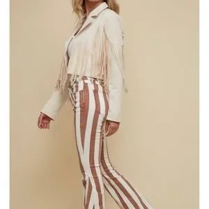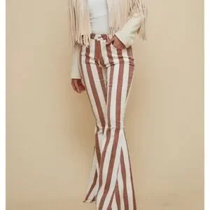 Be bold in these gorgeous striped jeans from Saints & Hearts that feature an exaggerated flare leg opening. These are so cute!