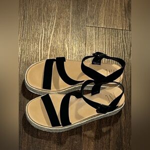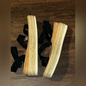 Stylish black espadrille sandals with a platform sole. Perfect for casual outings. EUC