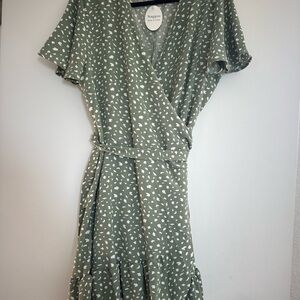 NWT Green and White Wrap Dress
