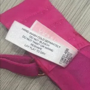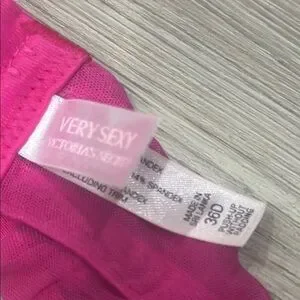 Victoria’s Secret push-up without the padding very sexy, fuchsia, hot pink and black lace with sheer twist overlay. Both are included in this listing. Gently used, great condition with gold hardware.