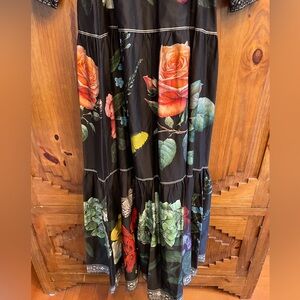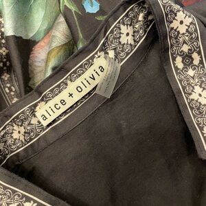 Alice + Olivia Elegant black maxi dress featuring vibrant floral patterns. Soft & flowing. Button up to the thigh for a sexy look or all the way down for an elegant look! Soooo soft!
