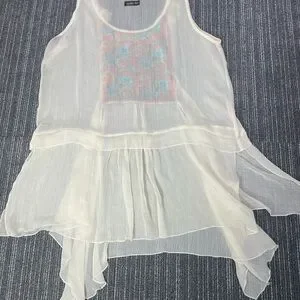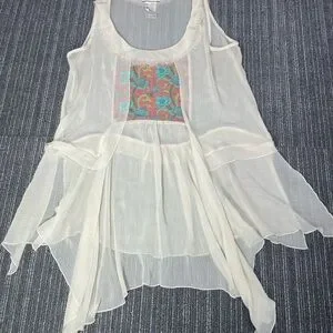 Matilda Jane Sheer White Sleeveless Tunic with Colorful Pattern