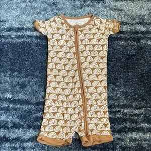 Adorable baby romper with a brown and white rainbow pattern. Perfect for everyday wear.