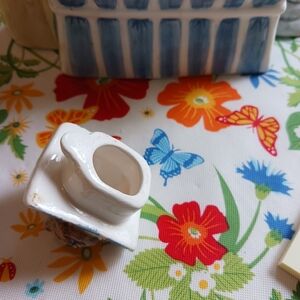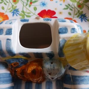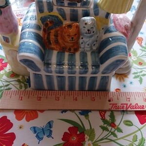 Teapot in the shape of cats on a couch. It's in great shape, with no chips or cracks.