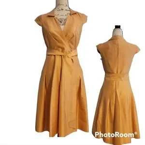 Anne Klein Mustard dress small 100% Silk