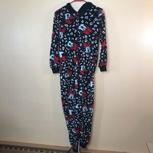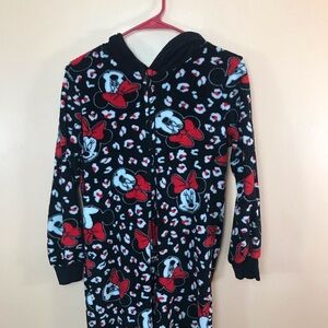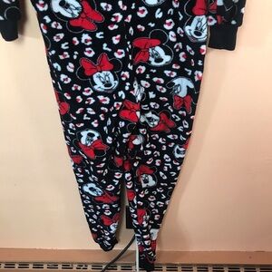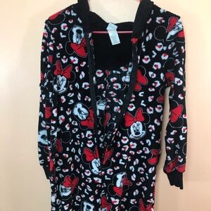 Minnie Mouse 1pc Zip Front Hooded Fleece Pajamas Women S. Excellent used condition. Measures about 54” long, 28” sleeves, 19” pit to pit and 18” across the waist. From a non-smoking home.