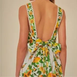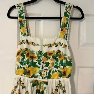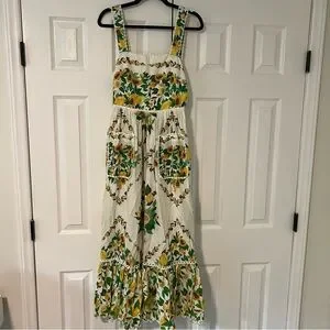 NWT Farm Rio Linen Papaya Salad Scarf Print Maxi Dress, Size XS