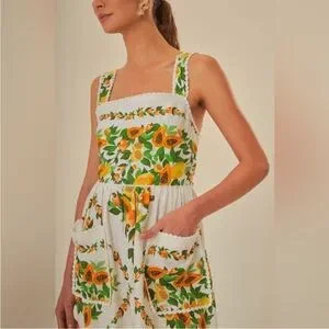 Introducing the Off-White Papaya Salad Scarf LENZING™ ECOVERO™ Euroflax™ Maxi Dress, a vibrant canvas painted with lush papaya and foliage motifs. A breezy square neckline and a playful ruffle hem invite a light-hearted spirit, while the delicate eyelet details add a touch of femininity. Crafted from conscious materials, this maxi dress shapes a harmonious blend of comfort and charm, perfect for sun-drenched days and balmy evenings. European Flax™certified GMO-free plant fiber produced without artificial irrigation that has guaranteed traceability and proven comfort, thermoregulation, moisture management, and breathability. 100% LENZING™ ECOVERO™the eco-responsible fibers generate up to 50% lower emissions and water impact compared to generic viscose.
