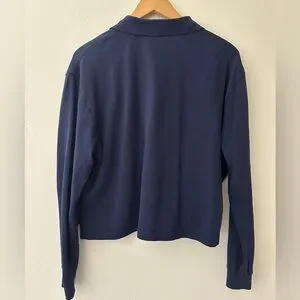 Navy long sleeve cropped polo shirt with embroidered logo. Classic and stylish design. Excellent condition. Boxy fit. No smells or un-photographed imperfections
