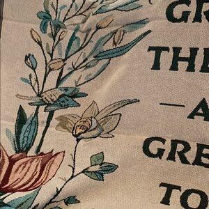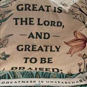 Large throw, brand new, 52” x 64”, for your couch or chair. Beautifully woven in shades of teal, beige and green. Psalm 145:3 New King James Version