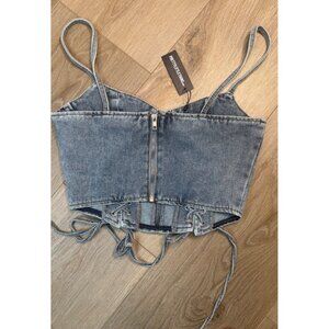 2/$30 NWT PrettyLittleThing Petite Size 6 Blue Denim Corset Top Lace-Up Sides