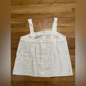 The NWT JCrew White Button-Front Crop Top in linen is a stylish and breathable addition to any woman's wardrobe. With a sleeveless design and crop neckline, this top offers a relaxed fit and is perfect for warm weather. The solid white color and button accents add a touch of sophistication, while the lightweight linen material ensures comfort. Whether dressed up or down, this top is versatile and chic, making it a great choice for any occasion.