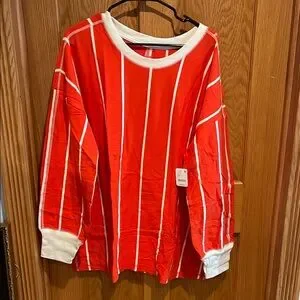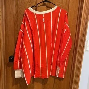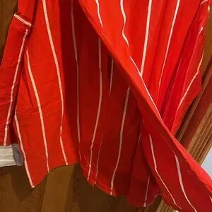 Stylish red and white striped long sleeve shirt. Perfect for casual wear.
