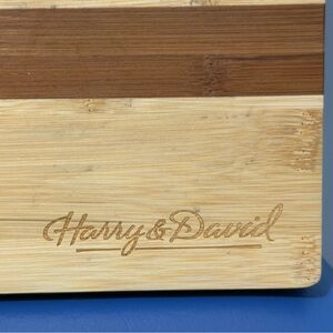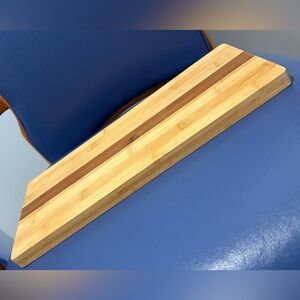 Elegant bamboo cutting board with a natural finish. Features a stylish stripe design.