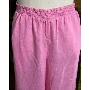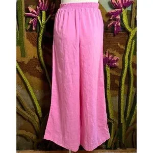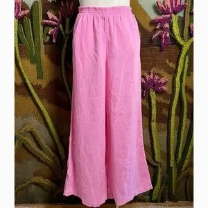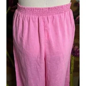 These pretty pink pants by Anthro at Anthropologie are made from 52% linen & 48% viscose.