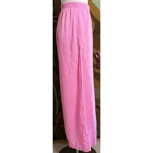 The wide leg pants have a comfortable elastic waist. They are a pull-on style.