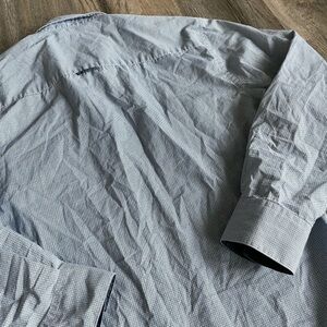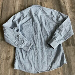 Zagiri Mens Blue Patterned Button Down Collared Shirt, size large. In excellent used condition. Such a grey shirt. Solid blue details make the shirt so nice.