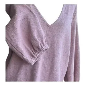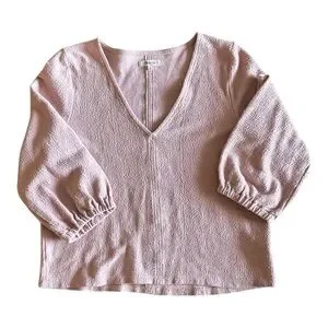 Madewell V-Neck Spring Blouse Textured Puff Sleeve Top Blush Pink Romantic XL