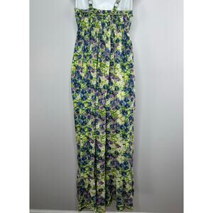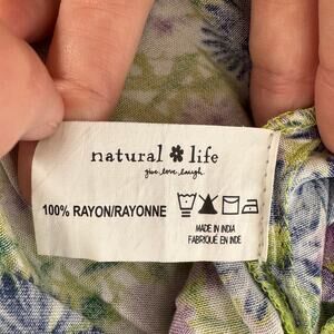 Natural Life Elizabeth Maxi Dress Women XS Green Floral Rayon Boho Cottage Flowy