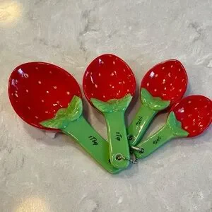 New Trendy Ceramic strawberry shaped measuring Spoons 4 pc set, great gifts!