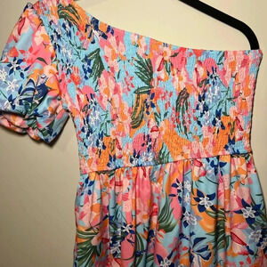 Floral Tropical One Shoulder Smocked Dress midi wedding guest travel