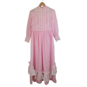 Vintage Pink Prairie Long Sleeve Dress w/ Lace Trim & Ruffle Details Women's M