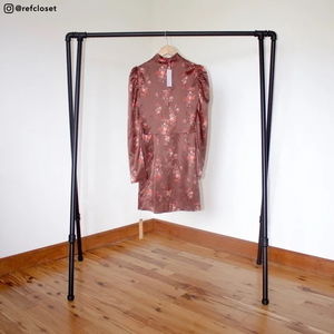 The Livie Dress from Reformation is slim fitting in the bodice with a fitted, overlapping skirt. The sleeves are relaxed fitting with puffed shoulders. There is a center front neck tie for a slightly fancier look.