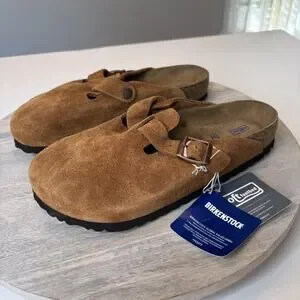 Up for sale I have this pair of New with Tags Unisex Birkenstock Boston Mink Classic Suede Soft Clogs. Men's US size 7. Ladies size 9. These Birks are in excellent condition. Never worn. Take a look at the photos and feel free to message me with any questions.