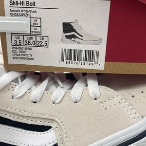 New in the box authentic Women’s Vans High-Top Sneakers in Black and White Sk8-Hi Bolt