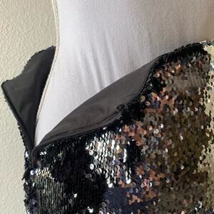 Forever 21 fully sequined mini skirt, sequins flip from black to silver with embroidered 3D floral appliqué roses on the front, poly fabric, fully lined, with side zipper and hook-eye close at the top, women’s size S small in excellent condition.