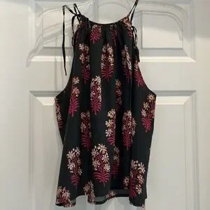 J. CREW NWT Tie-shoulder tank top in black block-print cotton voile size L