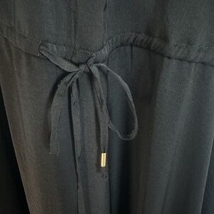 Banana Republic maxi dress in classic black, size 6 Petite. Features a modern T-back design with spaghetti straps, side slits, a stretchy elasticized upper back and an elasticized drawstring cinch waist to ensure a comfortable fit. Flattering flowy silhouette for the petite figure perfect for vacations or evenings out.